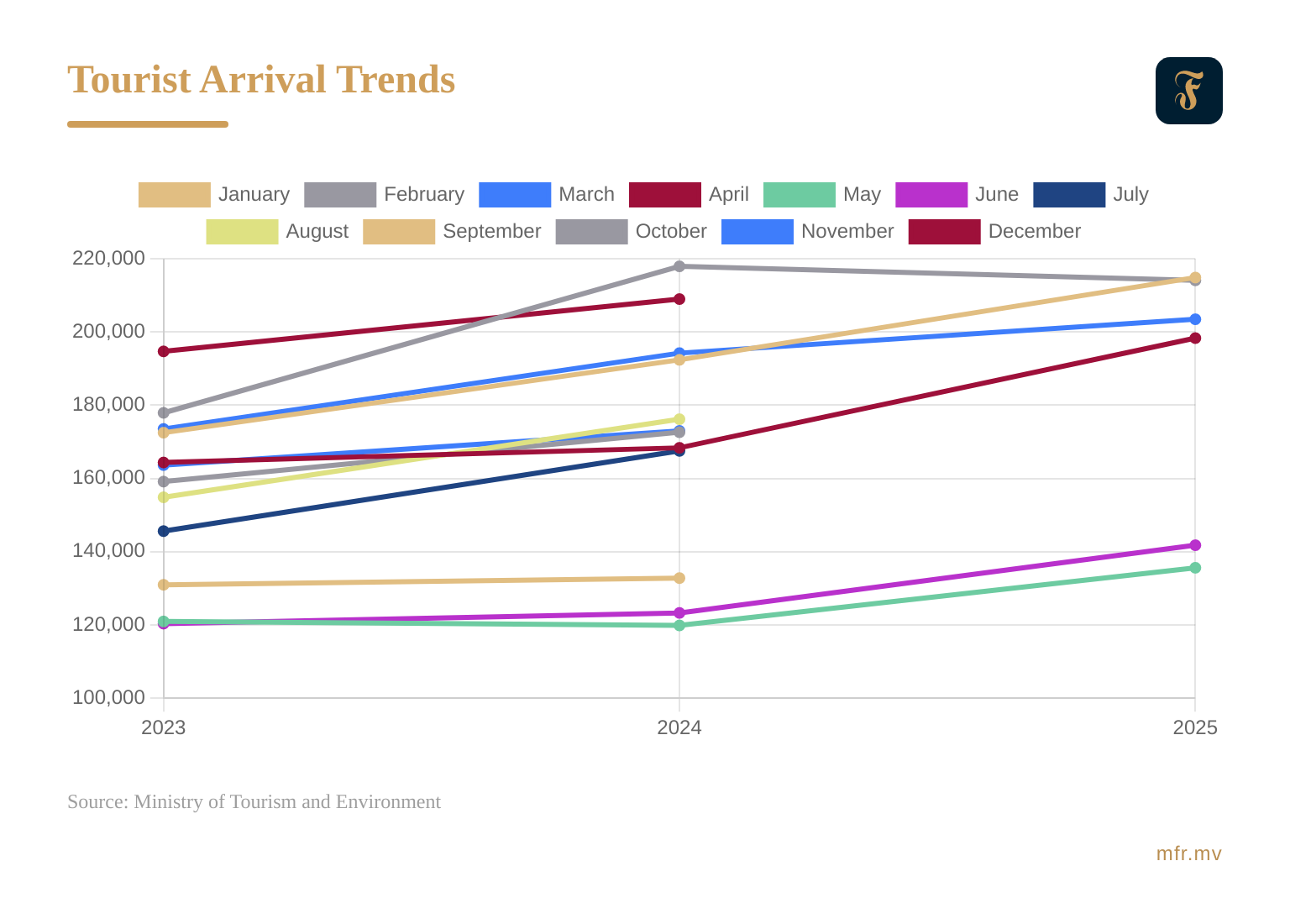 As the sector continues to recover and grow, the positive trends observed in 2025, particularly the surge during traditionally slower months signal a maturing tourism industry with increasing off-peak demand. In line with this momentum, the recent renaming of the Maldives Marketing and Public Relations Corporation to Visit Maldives Corporation Limited marks a strategic step by the government to streamline tourism promotion efforts, positioning the Maldives tourism sector for stronger, more coordinated growth in the years ahead.