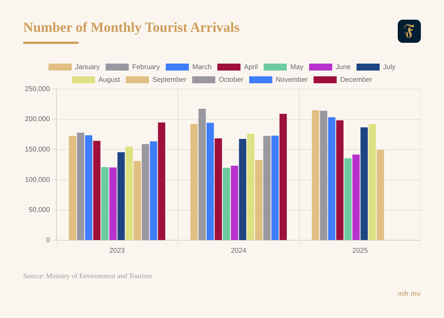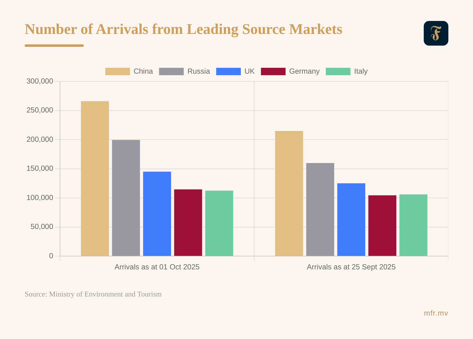 Looking ahead, the Maldives tourism sector is well positioned to close the year with record-breaking arrivals, supported by the expanding bed capacity, and the strong momentum leading into the high season. While the consistent upward trend in arrivals reaffirm the country’s standing as a leading global destination, continued focus on sustainable growth, improved data accuracy in
